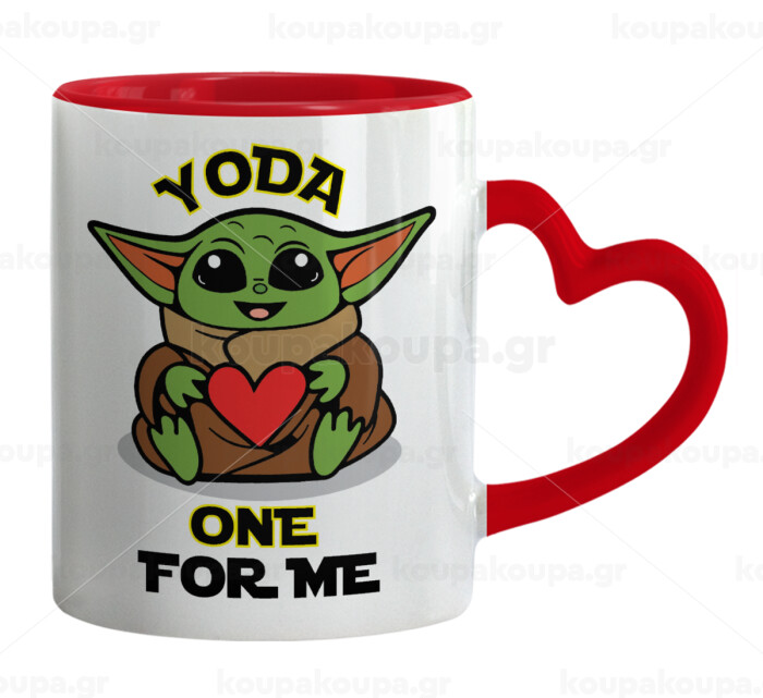 Yoda, one for me , Mug heart red handle, ceramic, 330ml