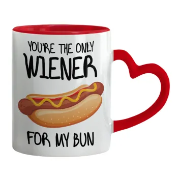 You re the only wiener for my bun, Mug heart red handle, ceramic, 330ml