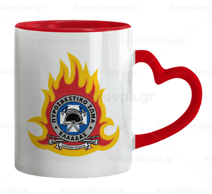 Πυροσβεστικό σώμα Ελλάδος σκούρο, Mug heart red handle, ceramic, 330ml