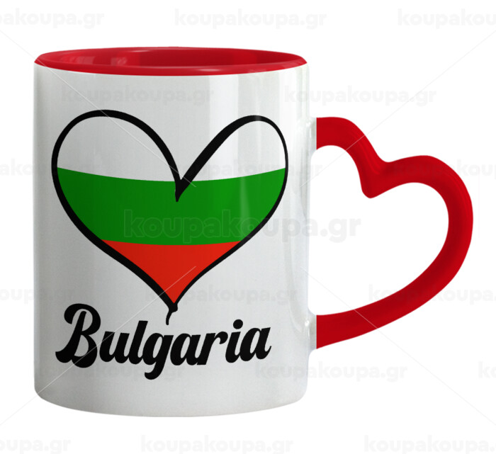 Bulgaria flag, Mug heart red handle, ceramic, 330ml