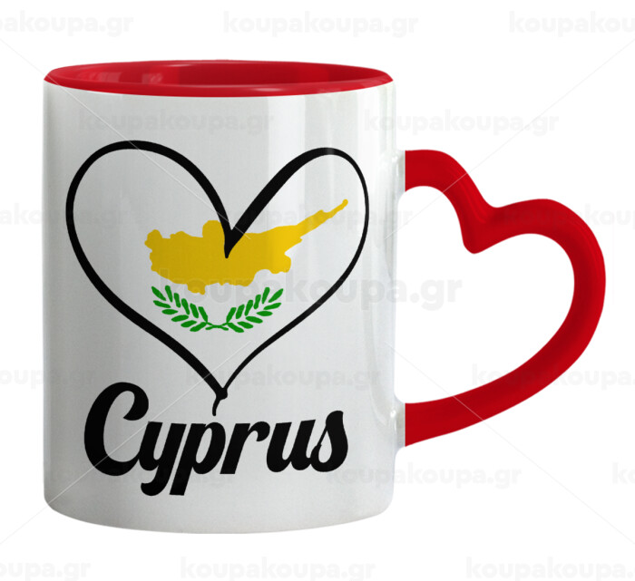 Cyprus flag, Mug heart red handle, ceramic, 330ml