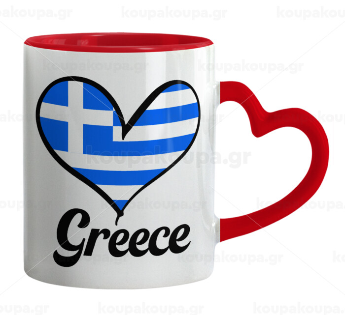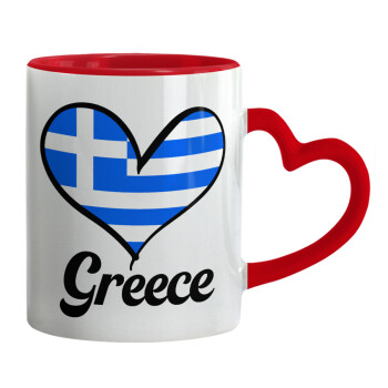 Greece flag, Mug heart red handle, ceramic, 330ml