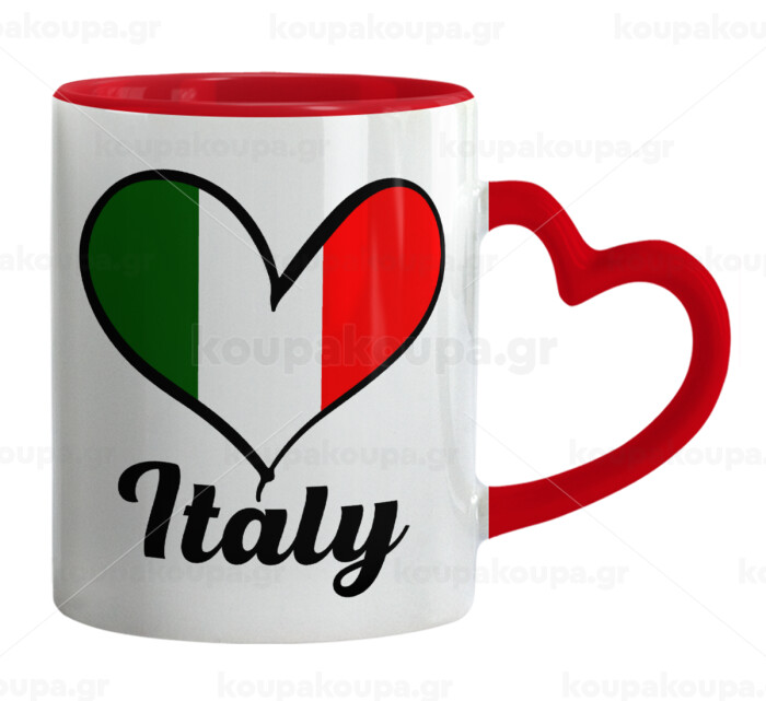 Italy flag, Mug heart red handle, ceramic, 330ml