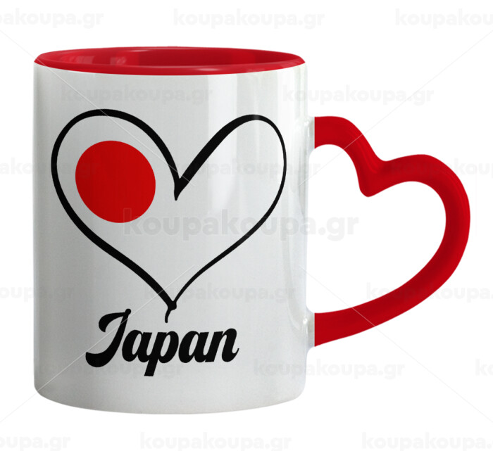 Japan flag, Mug heart red handle, ceramic, 330ml