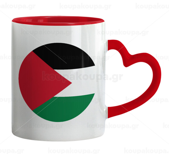 Palestine Flag, Mug heart red handle, ceramic, 330ml