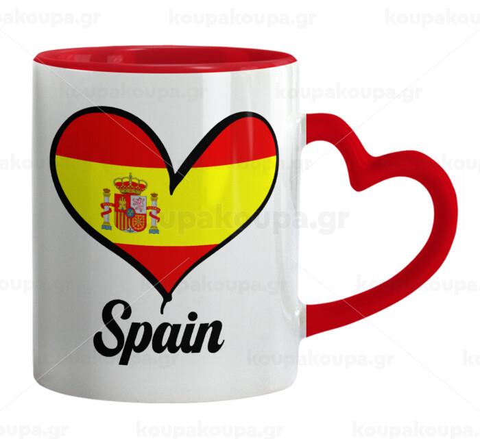 Spain flag, Mug heart red handle, ceramic, 330ml