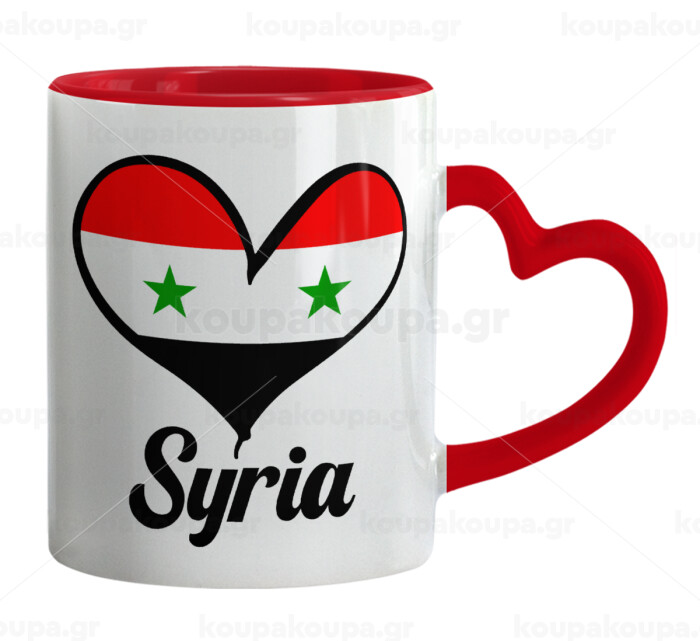 Syria flag, Mug heart red handle, ceramic, 330ml