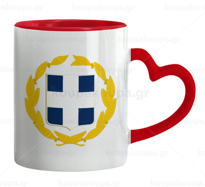 Hellas Εθνόσημο, Mug heart red handle, ceramic, 330ml