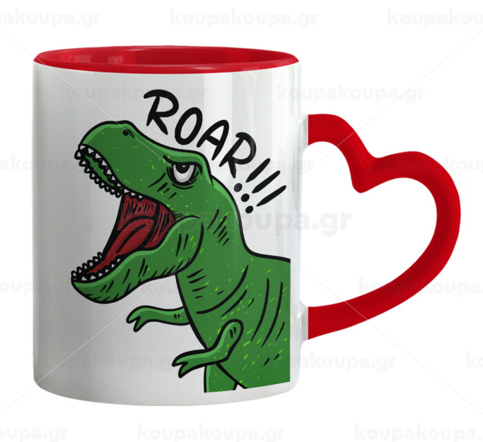 Dyno roar!!!, Mug heart red handle, ceramic, 330ml