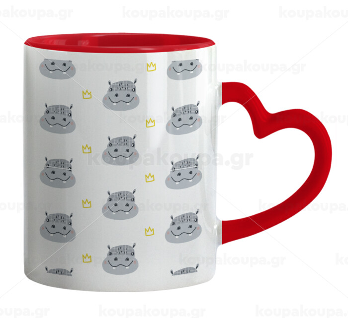 A glossy, high-quality mug with a heart-shaped handle and vibrant colors. Dishwasher safe and suitable for microwave use. Use it for hot and cold drinks.