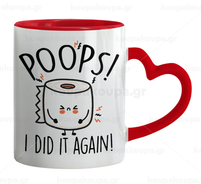 Poops!...I Did It Again, Mug heart red handle, ceramic, 330ml
