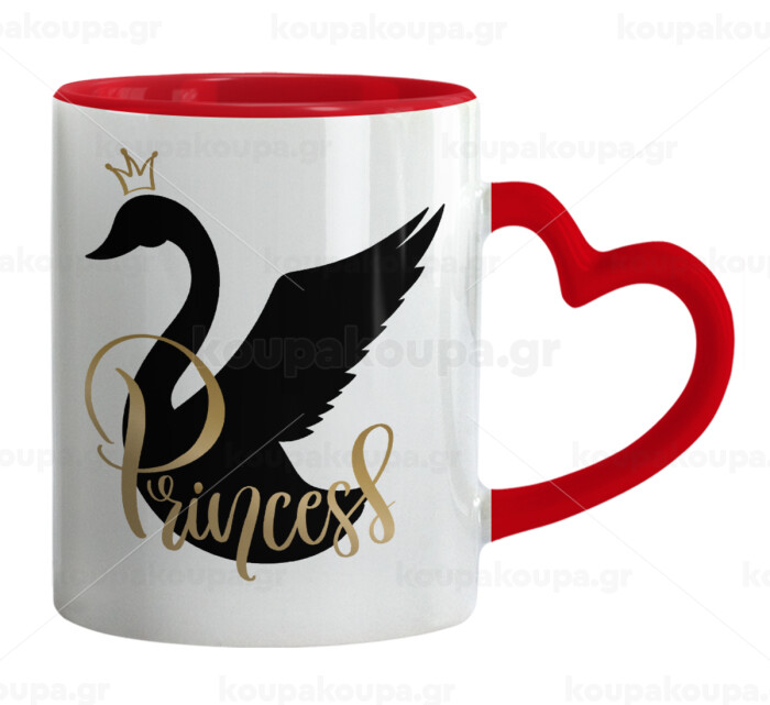 Swan Princess, Mug heart red handle, ceramic, 330ml