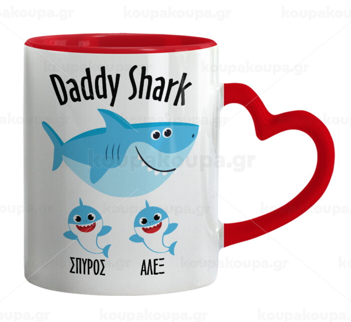 Daddy Shark (με ονόματα παιδικά), Mug heart red handle, ceramic, 330ml
