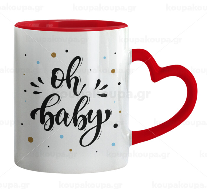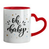 Oh baby, Mug heart red handle, ceramic, 330ml