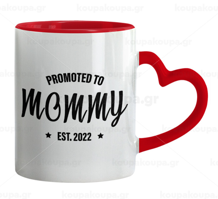 Promoted to Mommy, Mug heart red handle, ceramic, 330ml