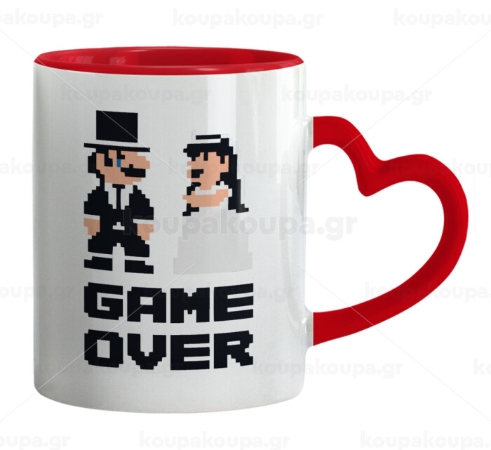 8bit Game Over Couple Wedding, Mug heart red handle, ceramic, 330ml