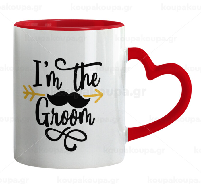 I'm the groom mustache, Mug heart red handle, ceramic, 330ml