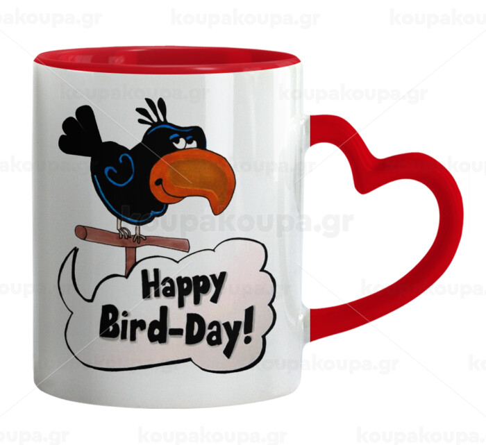 Happy Bird Day, Mug heart red handle, ceramic, 330ml