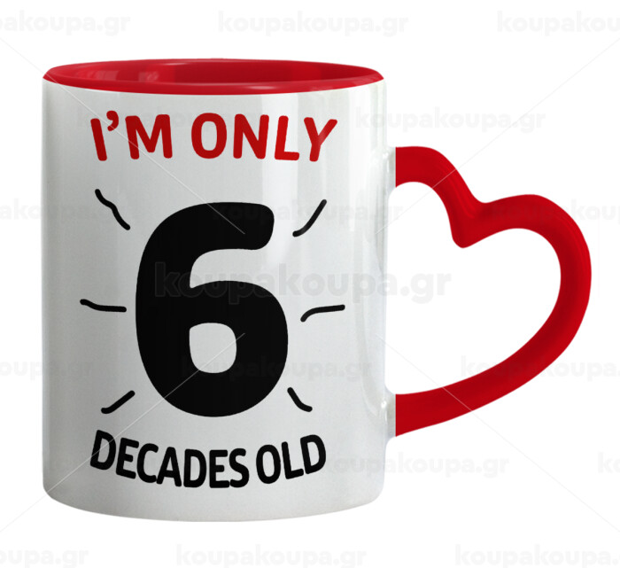 I'm only NUMBER decades OLD, Mug heart red handle, ceramic, 330ml