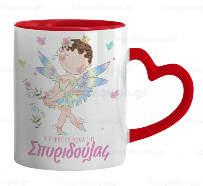 Η νονά μου, Νεράϊδα, Mug heart red handle, ceramic, 330ml