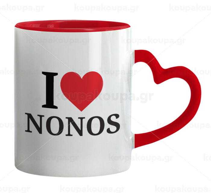 I Love ΝΟΝΟΣ, Mug heart red handle, ceramic, 330ml
