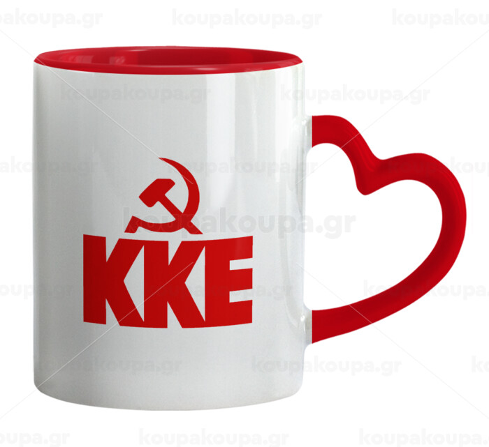 ΚΚΕ, Mug heart red handle, ceramic, 330ml