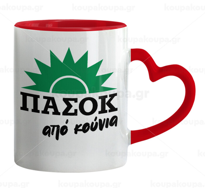 ΠΑΣΟΚ από κούνια, Mug heart red handle, ceramic, 330ml