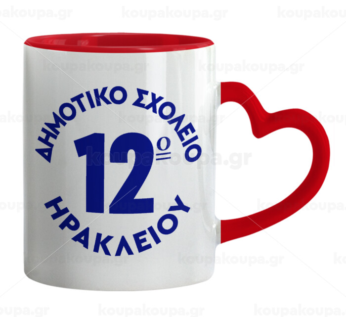 Έμβλημα Σχολικό λευκή, Mug heart red handle, ceramic, 330ml