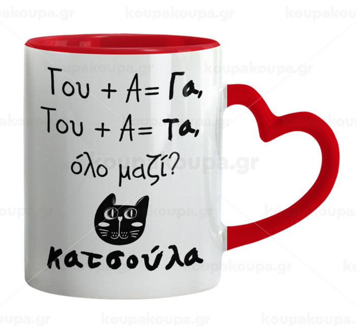 Κατσούλα, Mug heart red handle, ceramic, 330ml
