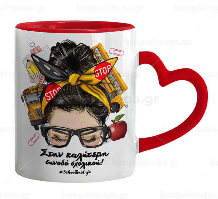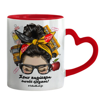 Στην καλύτερη συνοδό σχολικού!, Mug heart red handle, ceramic, 330ml