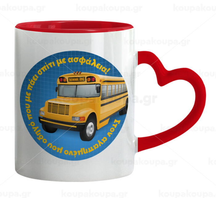 Στον αγαπημένο μου οδηγό σχολικού!, Mug heart red handle, ceramic, 330ml