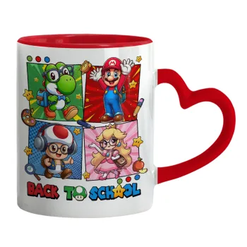 Back to the School Mario & Friends, Mug heart red handle, ceramic, 330ml