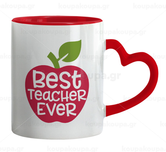 best teacher ever, apple!, Mug heart red handle, ceramic, 330ml