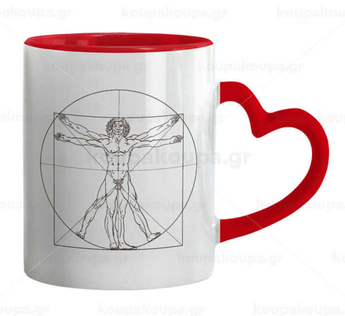 Leonardo da vinci Vitruvian Man, Mug heart red handle, ceramic, 330ml