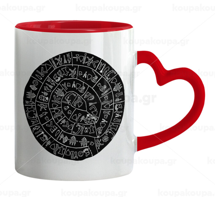 Δίσκος Φαιστού, Mug heart red handle, ceramic, 330ml