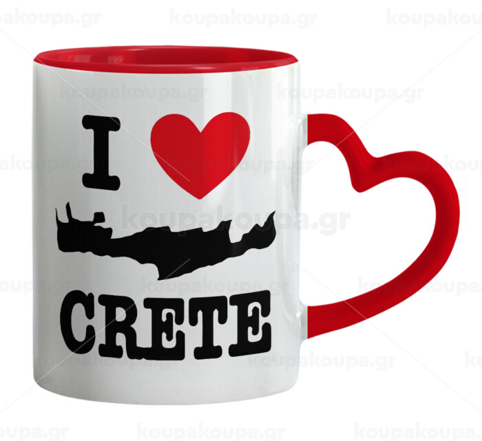 I Love Crete, Mug heart red handle, ceramic, 330ml