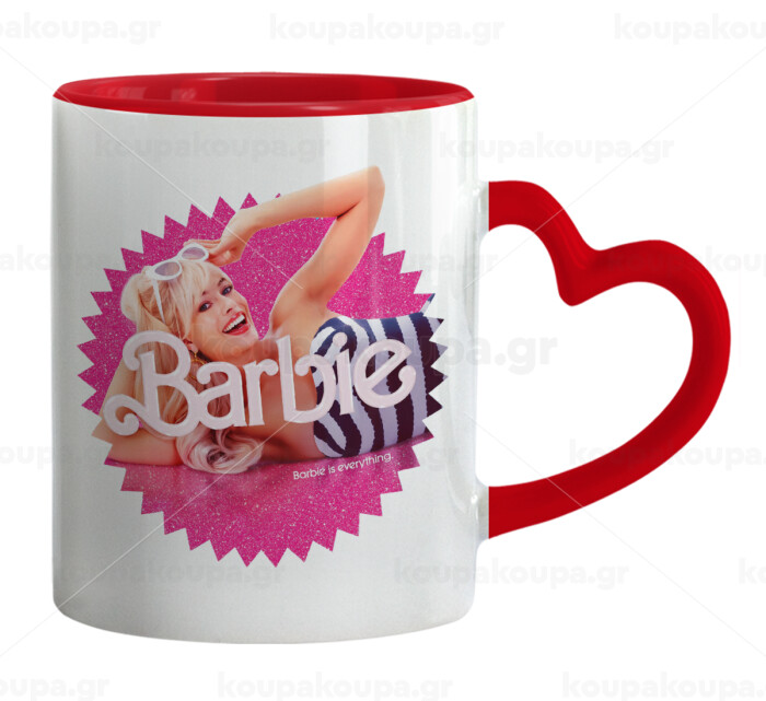 Barbie is everything, Mug heart red handle, ceramic, 330ml