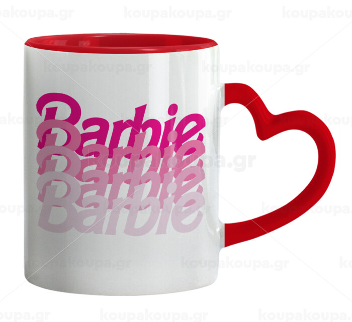 Barbie repeat, Mug heart red handle, ceramic, 330ml
