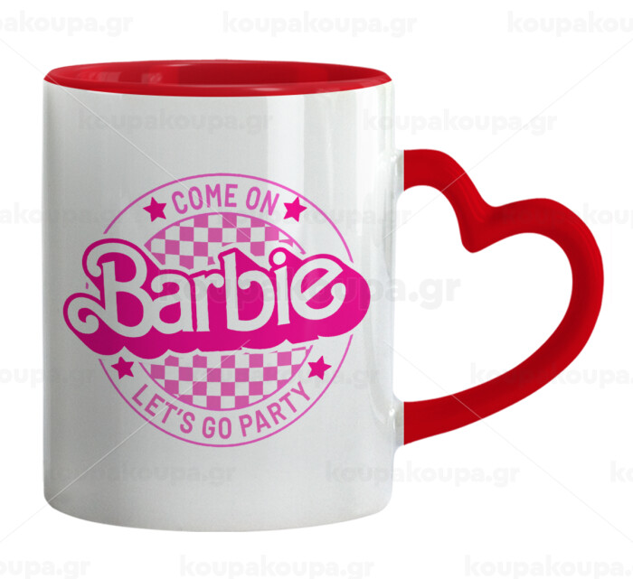 Come On Barbie Lets Go Party , Mug heart red handle, ceramic, 330ml