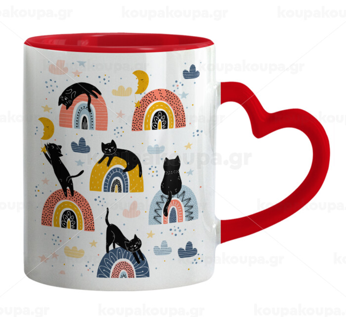 Γατούλες, Mug heart red handle, ceramic, 330ml