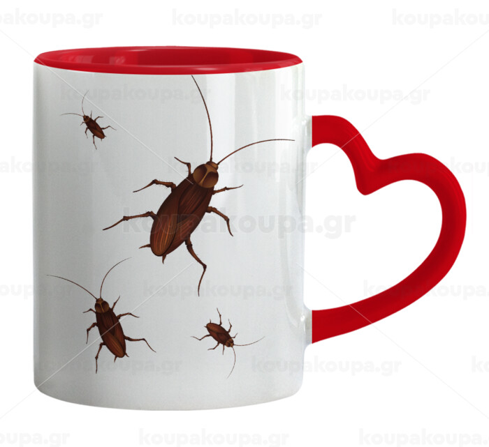 Blattodea, Mug heart red handle, ceramic, 330ml