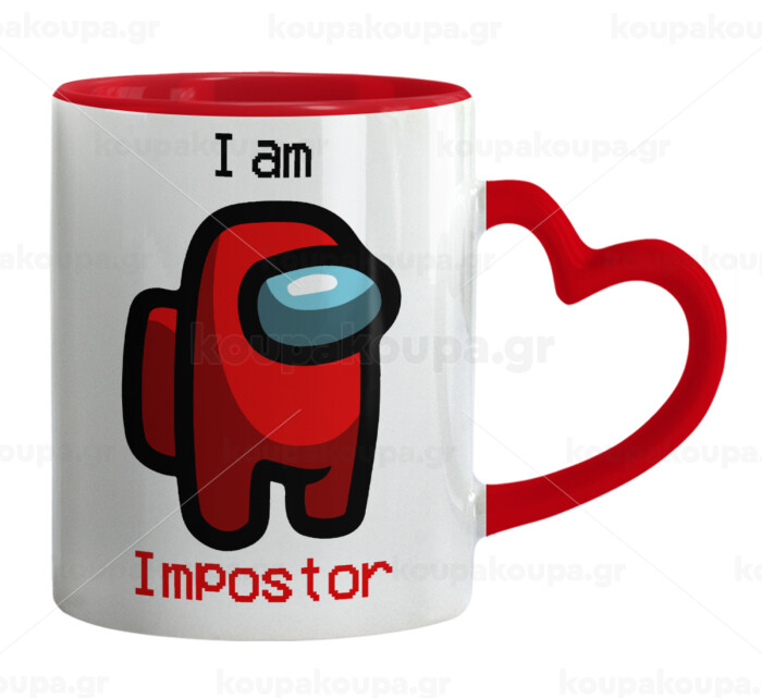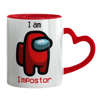 Among US i am impostor, Mug heart red handle, ceramic, 330ml