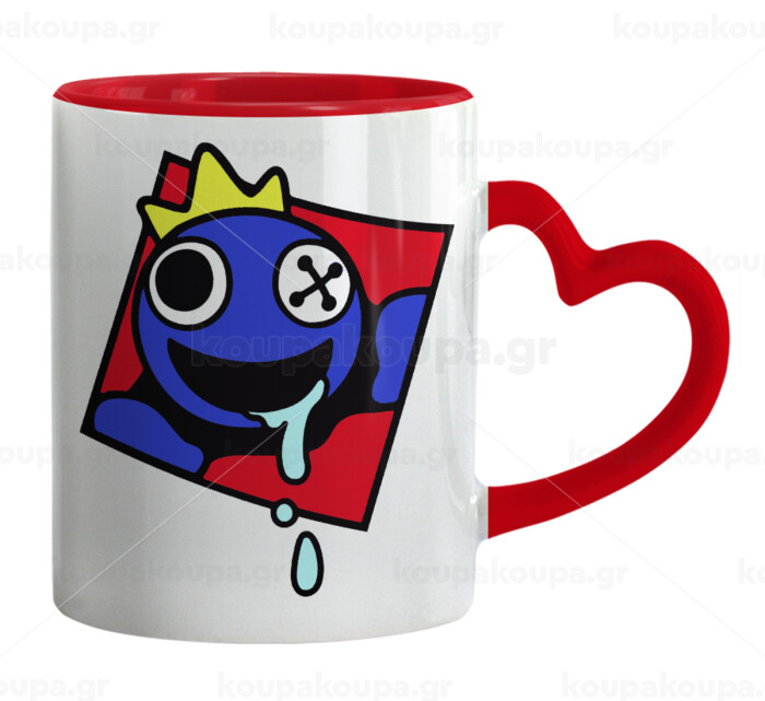 Blue, Rainbow friends, Mug heart red handle, ceramic, 330ml