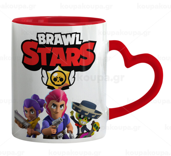 Brawl Stars Blue, Mug heart red handle, ceramic, 330ml
