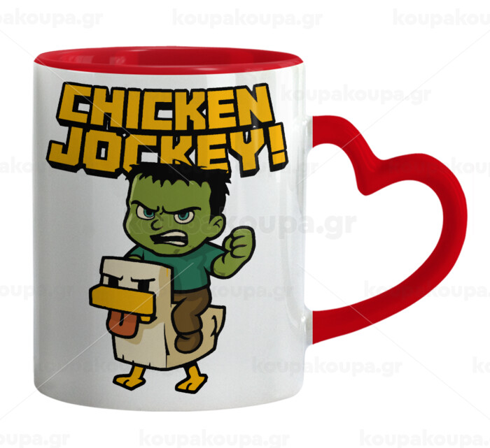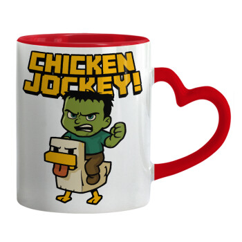 Chicken Jockey, Mug heart red handle, ceramic, 330ml