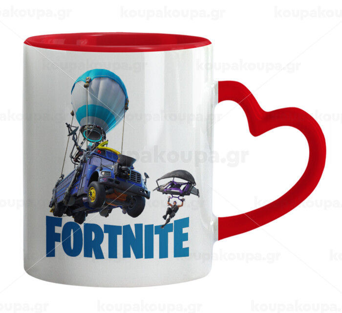 Fortnite Bus, Mug heart red handle, ceramic, 330ml