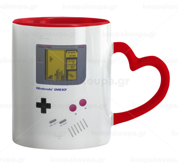 Gameboy, Mug heart red handle, ceramic, 330ml