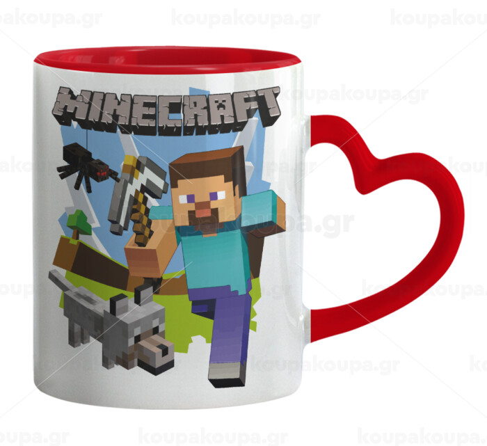 Minecraft Alex, Mug heart red handle, ceramic, 330ml