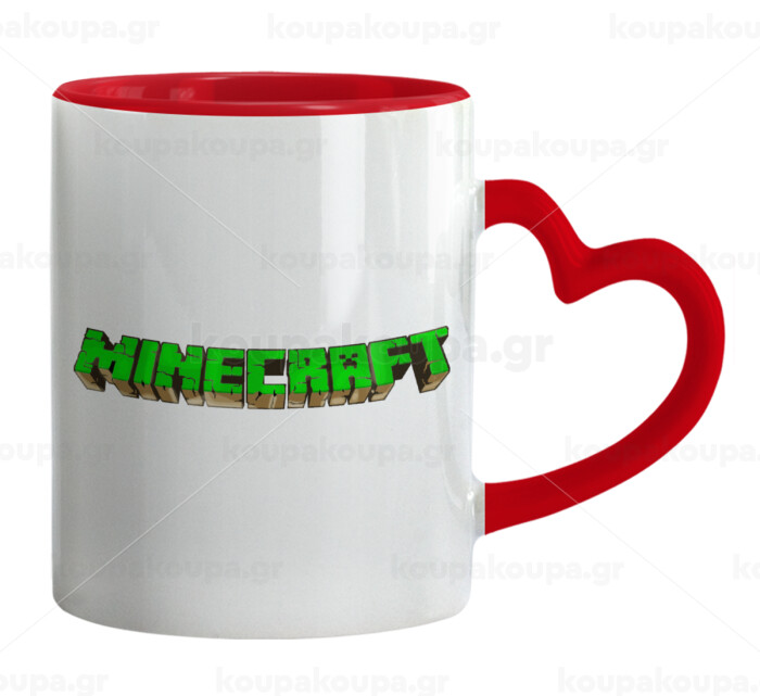 Minecraft logo green, Mug heart red handle, ceramic, 330ml