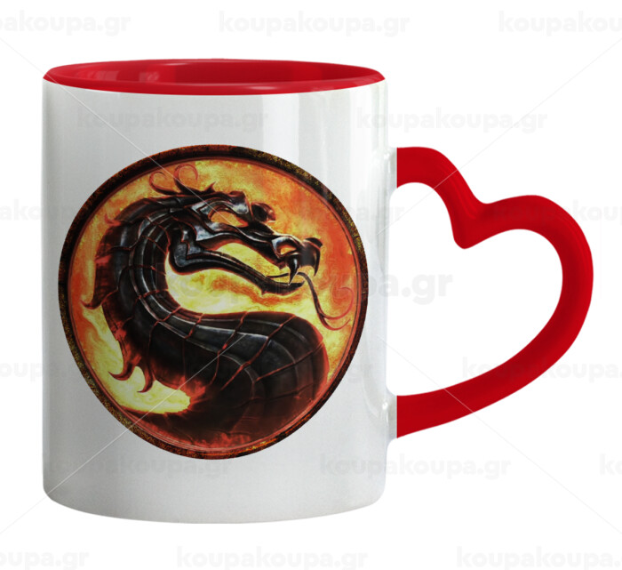 Mortal Kombat, Mug heart red handle, ceramic, 330ml